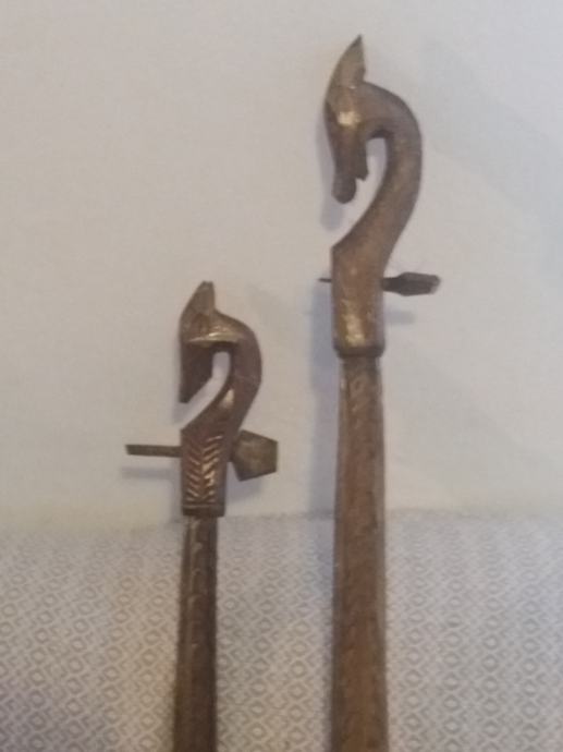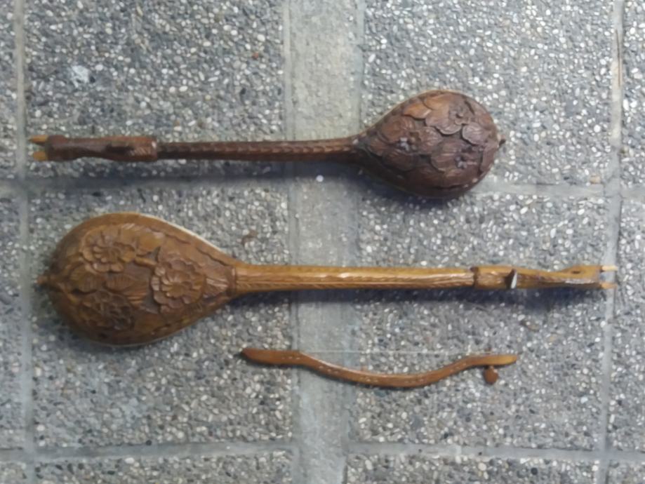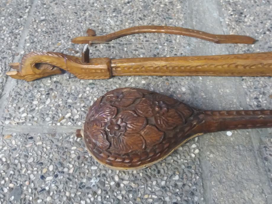 Prodamo dve starejši enostrunski brenkali (gusle) s čudovito ročno izdelano ornamentacijo vratu z živalsko glavo in trupa.
