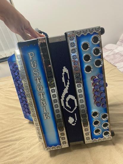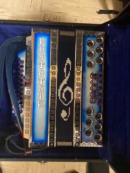 Ročno izdelana harmonika leta 2012 znamke Pustotnik v odličnem stanju.