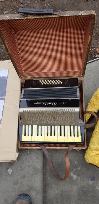 Prodam harmoniko z škatlo Schneider iz 2 svetovne vojne delujoča dobro ohranjena.