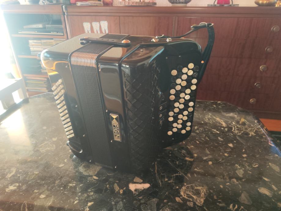 Prodamo lepo ohranjeno harmoniko Pigini studio B2, ki jo je sin potreboval v šolske namene. Po končanem šolanju, mu ni več do igranja, zato je na voljo novemu nadobudnežu. Harmonika je shranjena v priročni torbi.