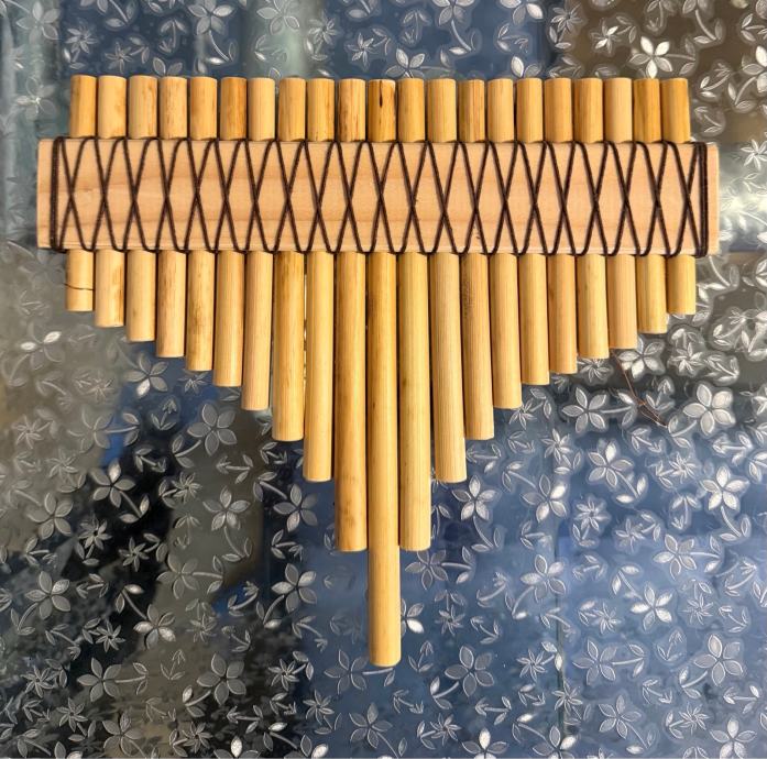 Dolžina večjega glasbila- trstenk je 24 cm in višina 21 cm, so tudi debelejše cevke, slika 2 in 3, ter drugega malo manjšega glasbila- trstenk je dolžina 22 cm , ter višina 18 cm, slika 4 in 5 . Kot omenjam lahko na trstenke igrate, ali pa so za lep dekor, obešene na steni.