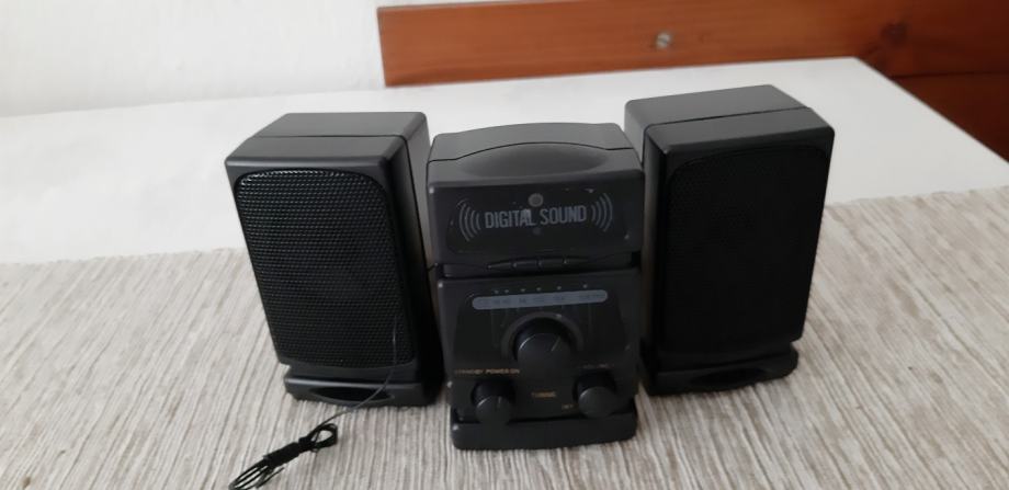 Mini, mini, glasbeni FM stolp, znamke DIGITAL SOUND , na baterije 4x 1,5V AA, z navodili,z dajnicem tudi na baterije 2x 1,5 V AAA, delujoč, nerabljen, črne barve, nepoškodovan.