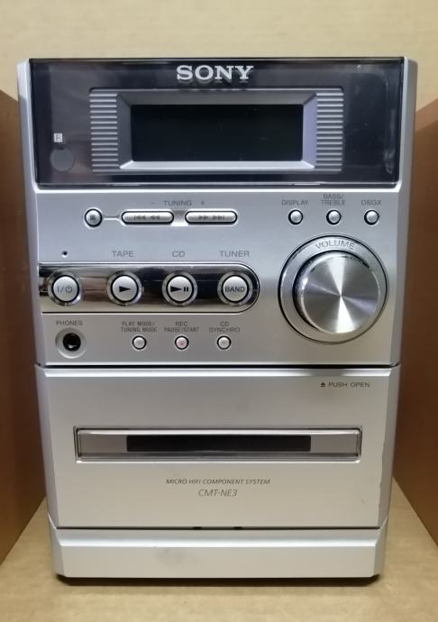 Prodaja se zelo lepo ohranjen micro stolp znamke SONY model HCD (CMT)-NE3 z predvajalnikom CD zgoščenk, audio kaset s funkcijo avtoreversa, radijskim sprejemnikom z RDS, AUX vhoda ( za priklop raznoraznih mp3, drugih audio naprav...). Ima tudi daljinski upravljalnik. Pred nakupom možno napravo testirati.