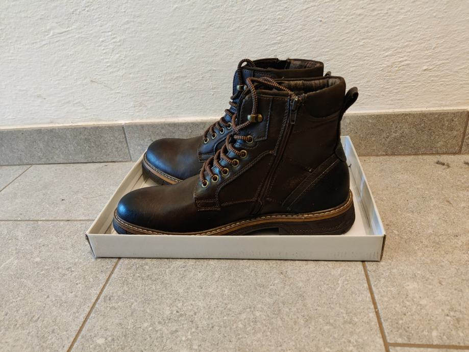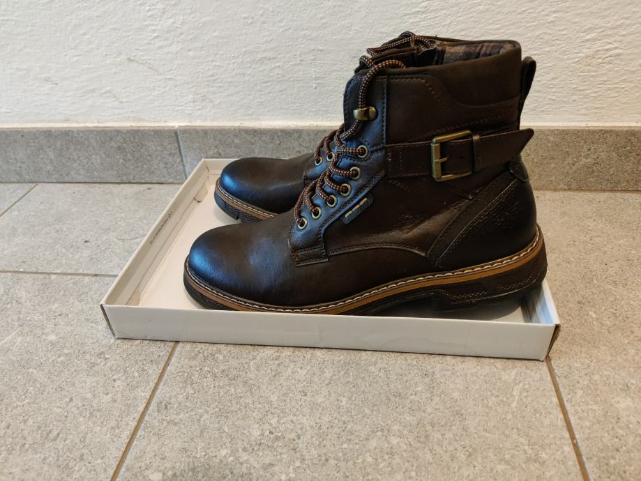 Čevlji so novi nikoli nošeni, samo 1x sem jih pomeril. Podložen je samo zgornji rob. Jaz ponavadim nosim št. 46, a so mi ti čevlji popoknoma prav.
