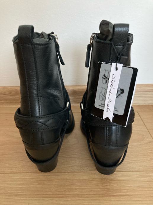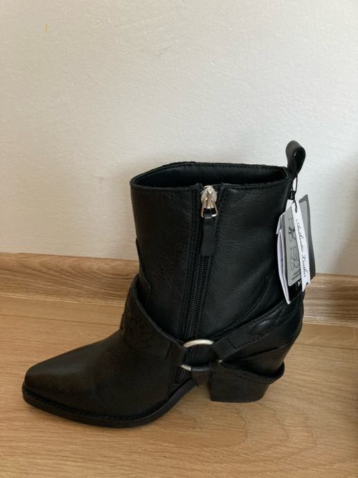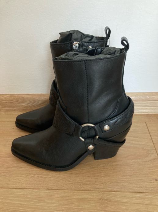 Novi kavbojske gležnarji MANGO, gladko usnje, črna barva, nikoli nošeni, št. 39.