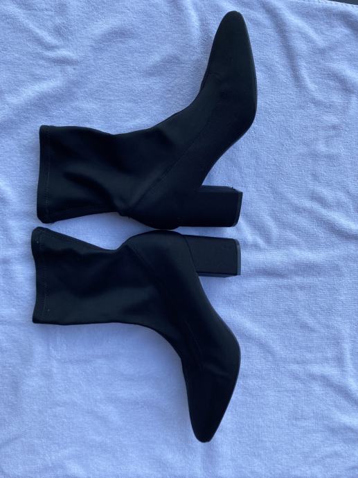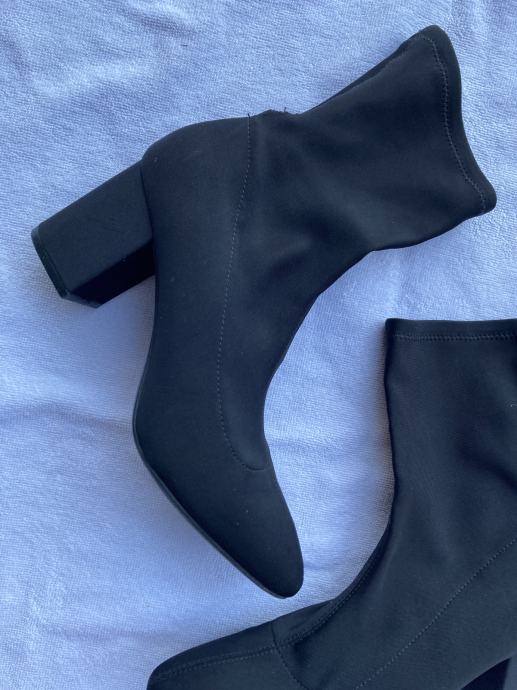 Gležnar polškorenj iz tekstila črne barve št 42, znamke HM, nošeni 1 x, višina pete 7 cm. Plačani 40 €