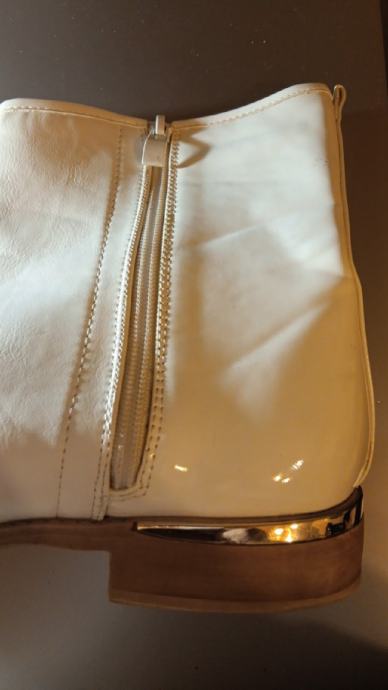 Prodam nove, nizke gležnarje na zadrgo bele barve št. 51. Sprednji in zadnji del je lakast. Podplat je iz gume.