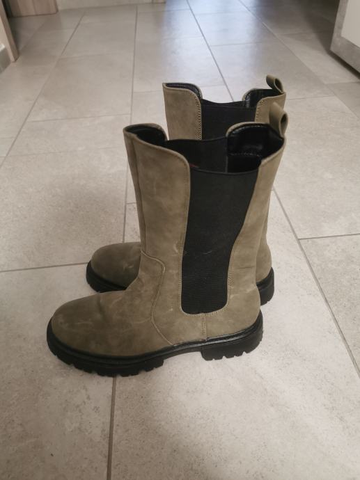 Prodajam rabljene zelene gležnjarje velikosti 40, ki so primerni za jesenski in zimski čas. Čevlji so udobni in vzdržljivi, z elastičnimi stranskimi vstavki za lažje obuvanje. Kljub uporabi so v dobrem stanju in bodo služili še mnogo sezon.