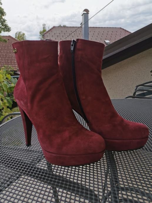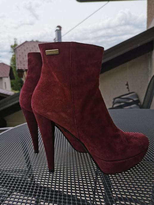 Prodam gležnarje z visoko peto: bordo rdeči, semiš, Roccobarocco, nošeni 2x,