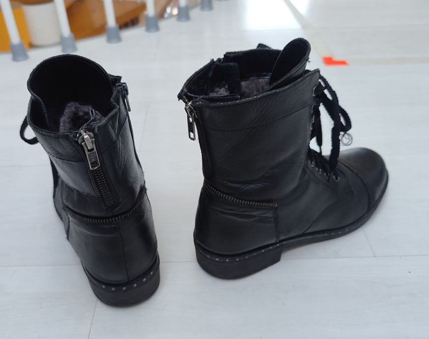 Lepo ohranjeni, nič poškodovani. Iz pravega usnja. Celi podloženi s krznom. Črne barve.