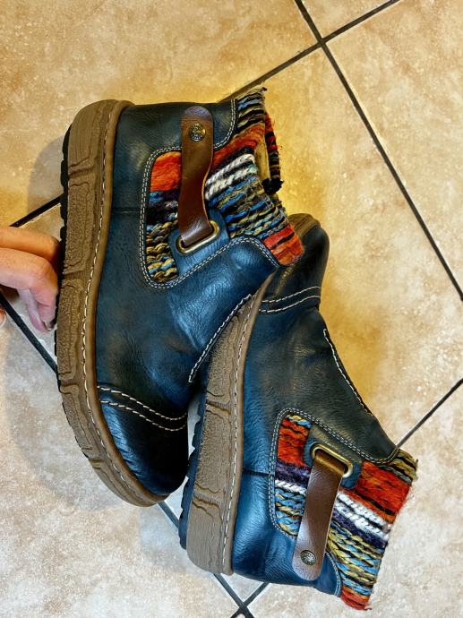 Usnjeni gležnarji Rieker, topli, za jesen in zimo, obloženi z ovco, zelo lušni, samo parkrat nošeni - glej stanje na fotkah.
