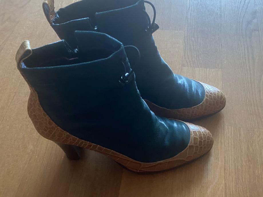 V celoti usnjeni gležnarji, zelena kombinacija z rjavo barvo. Zanimiv in poseben design. Obuti 2x.