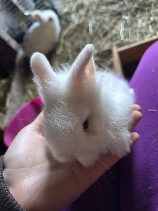 Na voljo imamo mladičke iz dveh legel, pasme levjegrivi pritlikavi kunec. Imamo 2 samički (črno belo in belo z črno očko) ter samčka belega z rjavo liso po hrbtu in samičko bele barve.