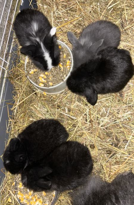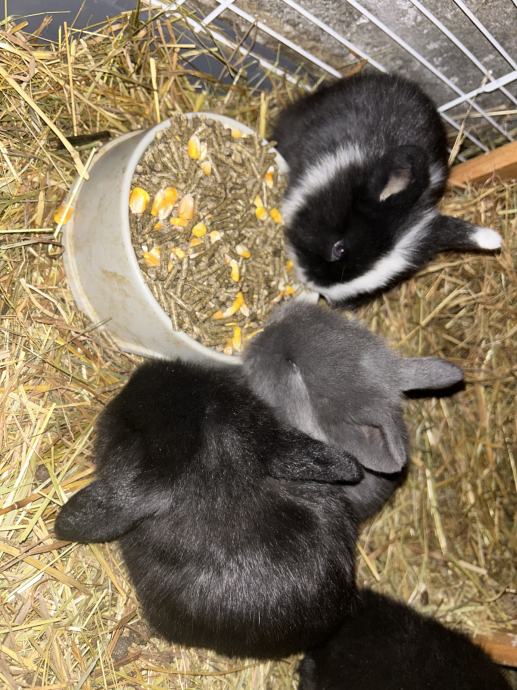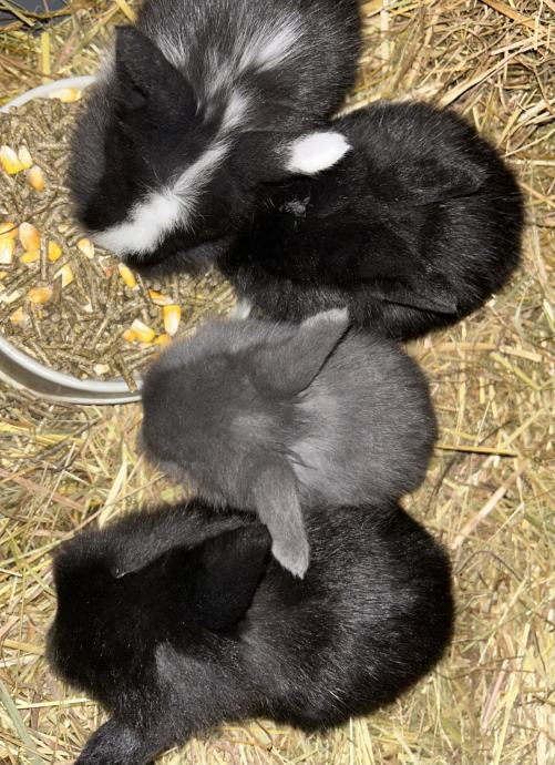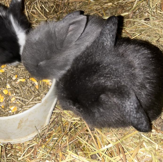 Na voljo imamo 3 samčke pasme mini lop, oz. pritlikavi ovnač. So črne barve s pikico na čelu. Mladički bodo imeli nekateri daljšo dlako, saj je mama bolj puhasta.