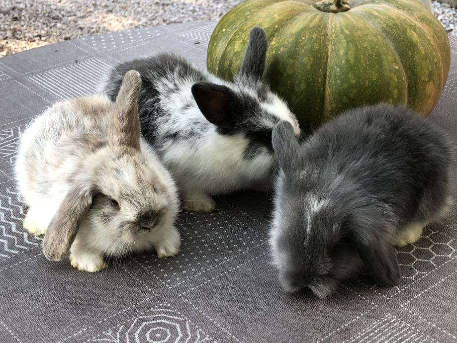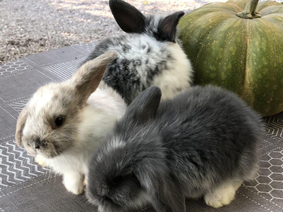 Oddamo 6 tednov stare kunce, starša sta pritlikava levjegriva ovnača. Kunci so navajeni božanja in cartanja. Lp