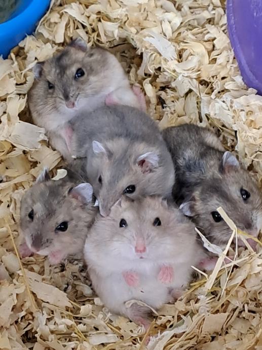 Za oddajo imamo mladičke zlatih in ruskih hrčkov. Mladicki so v različnih barvah, udomaceni in živahni. Brez parjenja v sorodstvu!