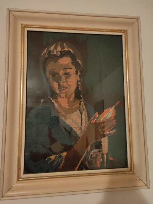 Lep uokvirjen gobelin velikosti 51x37. Nekoliko večje z okvirjem.