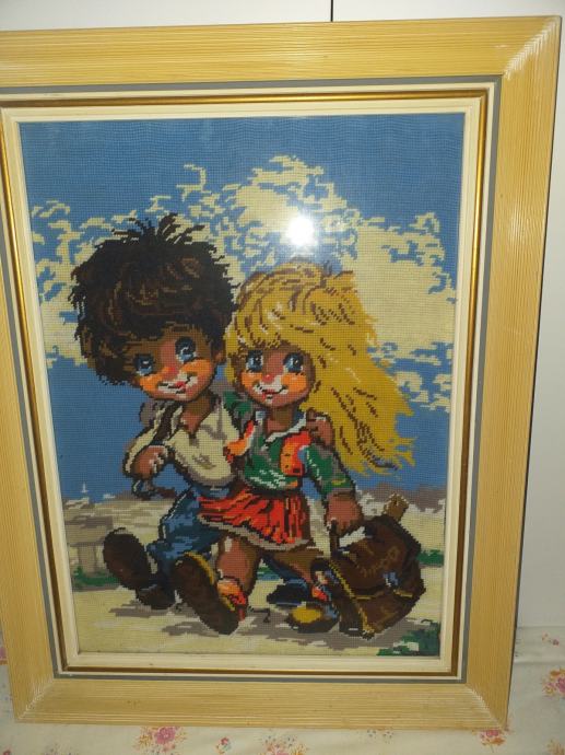Prodam ročno narejen gobelin, šolarčka, v velikosti 60 cm v višino in 47,5 cm v širino, seveda z okvirjem. Slika ima spredaj steklo.