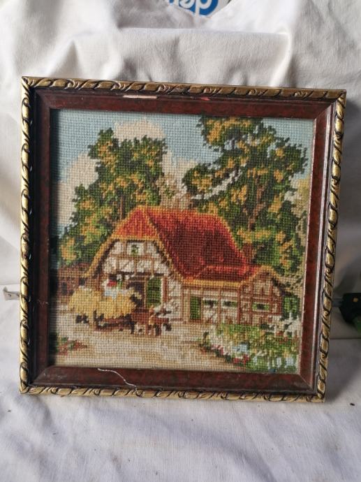 Na voljo je gobelin v starinskem okvirju s steklom 25 x 25 cm KMETIJA.