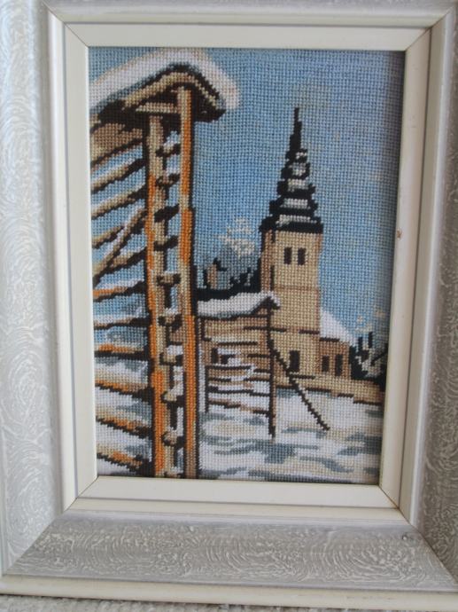 Unitasova gobelina sta zasteklena, velika 24 x 40 in 22 x 28 cm, stara sta več kot 20 let in nepoškodovana. Narejena sta iz prejice. Cena je za en kos. Pošljem po povzetju.
