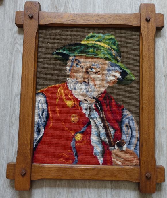 Gobelin moškega s fajfo ima nekaj prask, vidite na zadnji sliki.