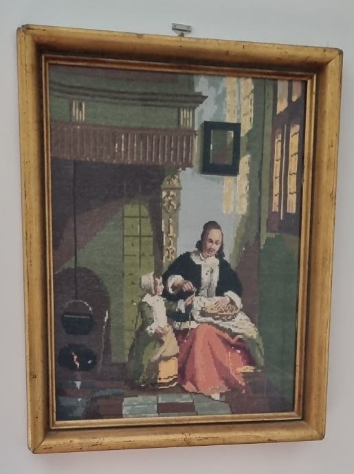 Gobelin, cca 60 x 48 cm, zastekljen, z okvirjem.