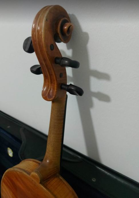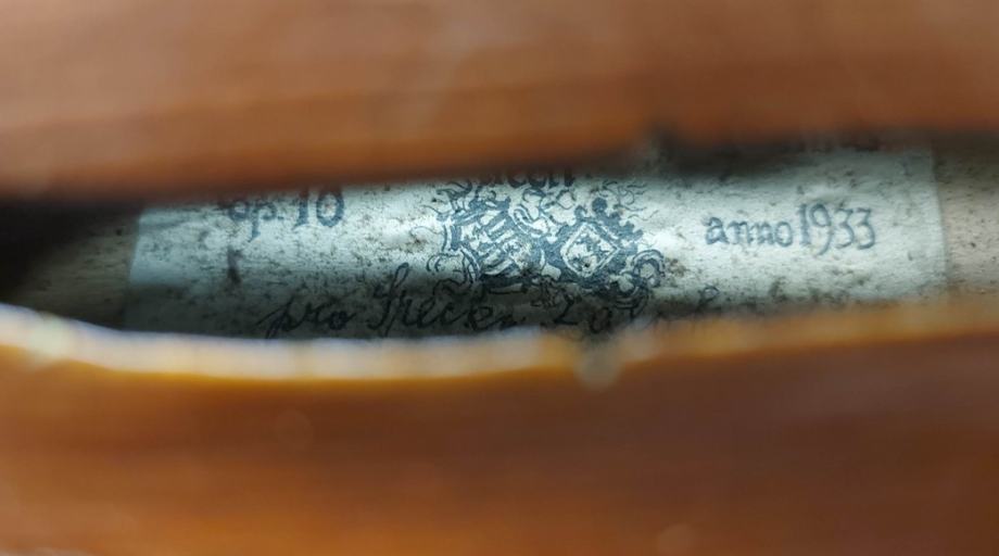 Instrument je izjemna redkost, velikosti 4/4. Tudi s posvetilom izdelovalca v notranjosti.