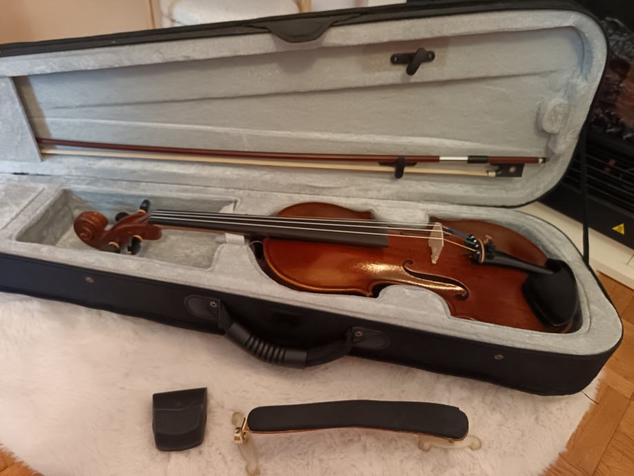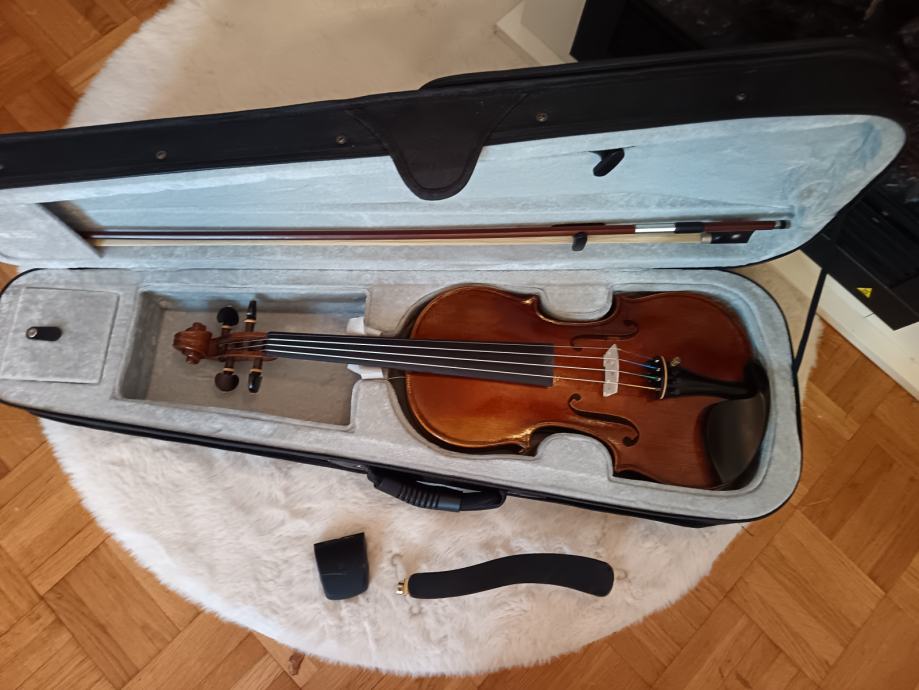 Violino smo (s pomočjo in po nasvetu učiteljice v glasbeni šoli) hčeri kupili novo v trgovini Symphony konec junija 2025 (imamo tudi račun). Med poletjem ni igrala, septembra in oktobra je hodila v glasbeno šolo, nakar smo jo na njeno odločitev žal izpisali. Odločila se je, da ne želi več igrati, zato violino, ki je v bistvu kot nova (igrana 2 meseca) prodajamo.
