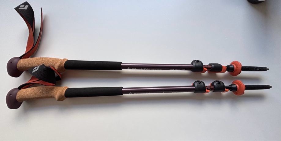 Prodam praktično nove (1x uporabljene) pohodne palice Black Diamond Trail Cork, velikost 100-140cm. Barva ‘Fig’.