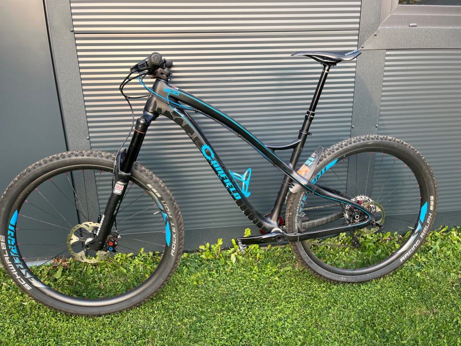 +karbonski 29ws, 25mmid, dt350, straitpull, 180 xt rotorji, F: Rocket Ron, R: Racing Ralph, gumi, 10 redna sunrace kaseta