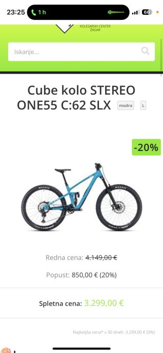 Akcijska cena kolesa je trenutno okrog 3.000- prodam isto kolo za 1999€ v ceno vključeni dodatki ki jih kupec lahko kupec dobi po želji.
