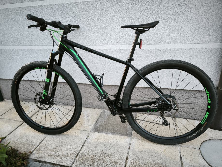 Kolo je letnika 2017, velikost L. Oprema je Shimano XT, vilice Fox, prestave 2x11. Ima nekaj prask, večinoma zaradi shranjevanja (preveč koles v garaži) kakšna pa tudi zaradi kakšnega padca. Ampak kar je najbolj važno, na kolesu vse dela tako kot mora.