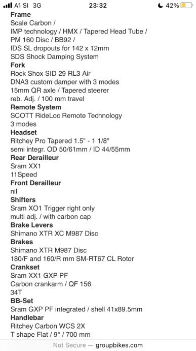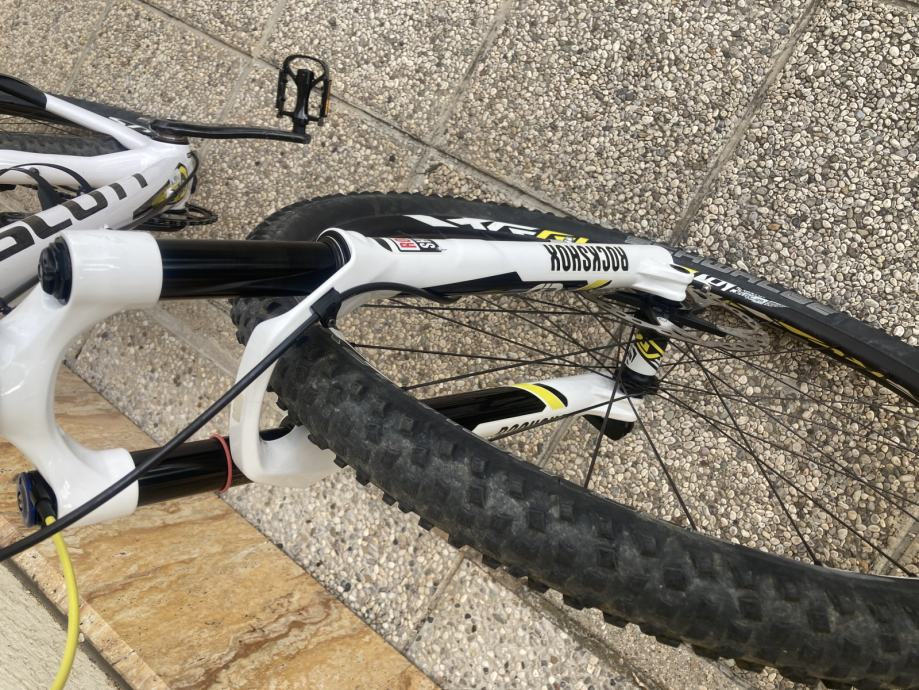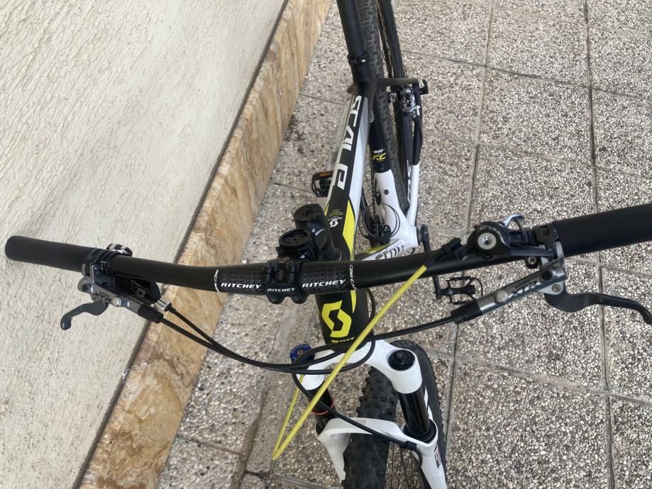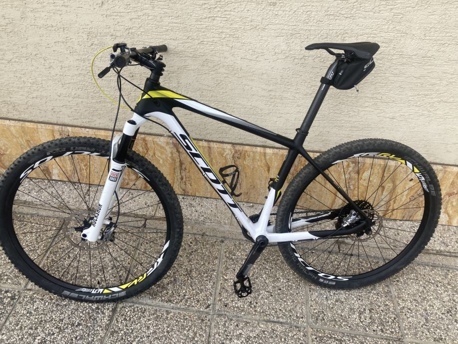 poz ugodno prodam tekmovalno gorsko kolo scott scale rc 900 velikost je l sam imam 190cm pa mi je ok,kolo je karbonsko in zelo lahko 8,5 kg je res kot novo brez praske z vso orginal opremo. zadnji menjalnik sram xx1,shifters sram xx1 carbon rocka,,kolesa so 29 syncross xrc,sidi sprednja vilica,cena novega je bila 6000e.samo resni info na mail roozica23@gmail.com.hvala lp