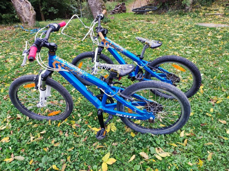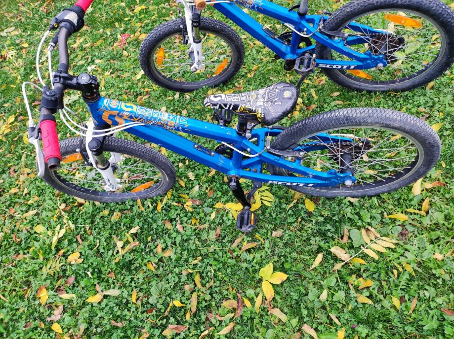 Prodamo 2 otroška gorska kolesa Scott, model Voltage, 20 col. Velikost primerna za 5-7 let (odvisno od višine otroka). Aluminijast okvir, kolo je težko 11kg. Ima 6 prestav. Kolesa sta dobro ohranjena, vozna, imata pa nekaj prask. Dostava do Ljubljane (med tednom). Cena enega kolesa 140€, oba skupaj 250€.