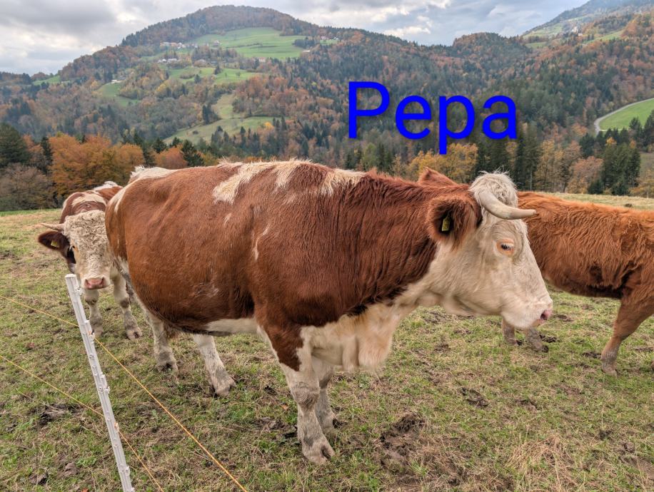 Pepa stara 12let, breja cca 6mesecev veterinarsko pregledana, teže cca 700kil