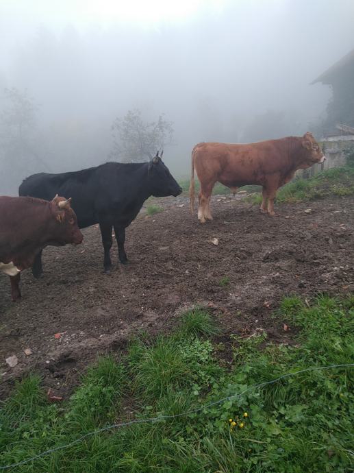 Prodam tri pašne telice..težki dve 600kg obe brej 7 mesecev in so pregledani.. in ena manjsa 350kg... Za breji telici 2250€ po komadi..