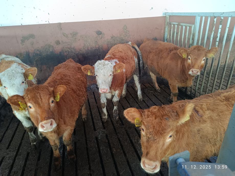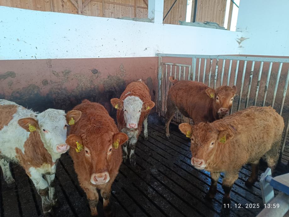 Prodam 5 telic. Odstavljene od krav. Starost od 5 do 7 mesecev. Tezke od 250 do 320 kg. Tri cisti limuzin. Dve mesni simental. Prodaja samo v kompletu. Cena 7200 eur plus ddv.