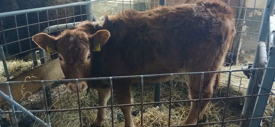Prodam pet in pol mesecev staro teličko limuzin ima okoli 250 kg primerna tudi za nadaljnjo rejo,