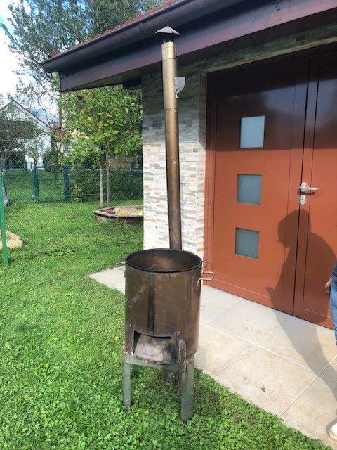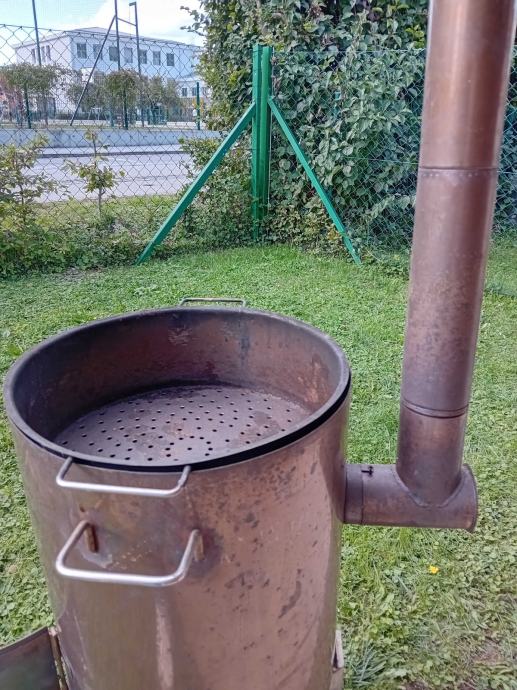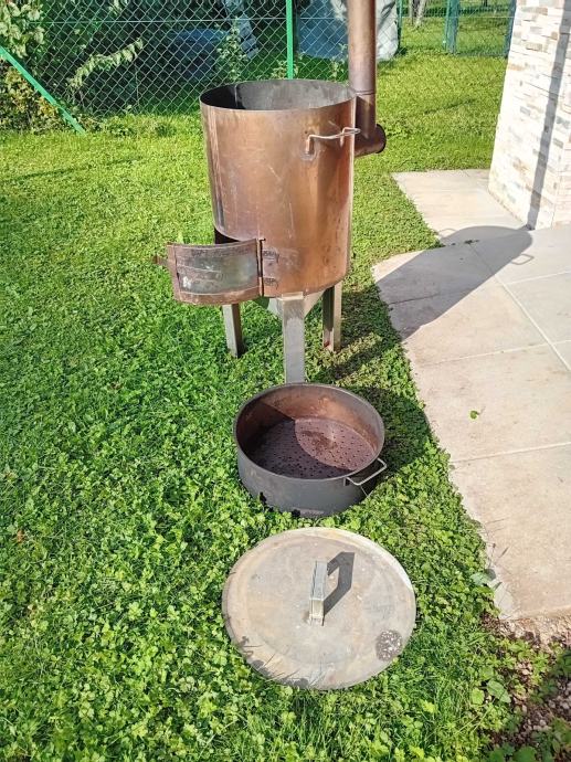 Pekač je izdelan iz bakrene pločevine in je sestavljen iz ohišja premera 43cm in višine 50cm. Spredaj ima vratca kurišča, na zadnji strani pa se vstavi dimna cev premera 10cm in višine 140cm. Na vrhu ohišja se vstavi posoda globine 15cm z perforiranim dnom. Posoda se po potrebi pokrije z pokrovko. Vse pa se postavi na podstavek z tremi nogicami. Ta je tudi edini del, poleg pokrovke, ki ni iz bakrene pločevine.