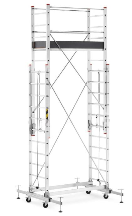 Za povečanje stabilnosti konstrukcije je modul mobilnega odra opremljen z nastavljivimi, raztegljivimi nogami, ki znatno ojačajo in stabilizirajo celoten oder.