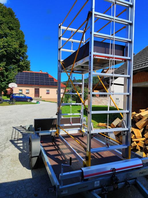 NAJEM, PRODAJA delovnega odra delovne višine 5.6m...širina 60/160 ploščadi,varnostna ograja višina 1.1m..... nastavljiva višina po želji, zelo kompakten, stabilen,za vse vrste površin...z dostavo....inf Facebook VodnaTuba tel 041/766010