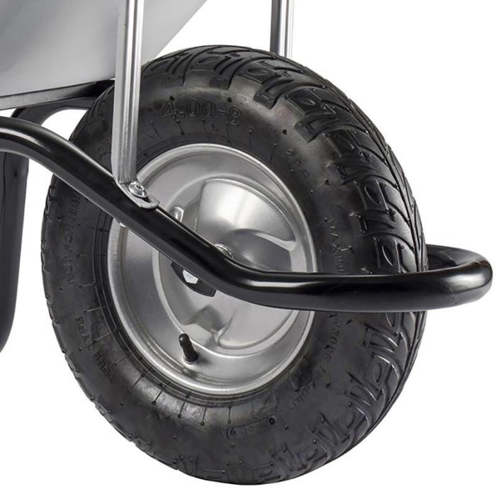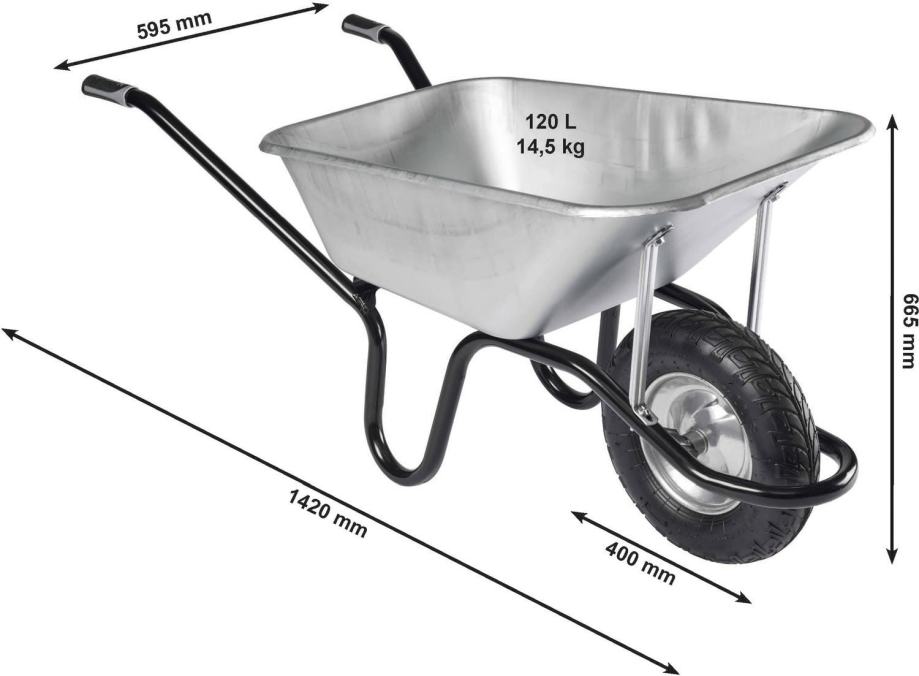 Z enokolesno samokolnico Haemmerlin s prostornino 120 l in nosilnostjo 200 kg je mogoče prevažati razsuti tovor vseh vrst. Zaradi ozkega globokega korita gre skozi vsa vrata in je idealna za gradbena dela, obnove in vrtnarska dela.Izjemno ergonomičnaDolgi ročaji zagotavljajo idealno porazdelitev moči zaradi velikega vzvoda. Tako je dviganje še posebej preprosto, tudi če je samokolnica obremenjena do največje nosilnosti 200 kg. 2-komponentna mehka ročaja poskrbita za popolno ergonomijo in posebej dober oprijem.Vrhunska izdelavaPocinkana, pred korozijo zaščiteno jekleno korito ne prepriča le z izjemno robustnostjo, temveč tudi z privlačnim videzom. Gladko tekoče kolo s pnevmatiko Ø 400 mm v kombinaciji s krogličnim ležajem in dobro obdelanim kovinskim platiščem zagotavlja visoko stabilnost in dolgo življenjsko dobo. Samokolnica je dobavljena razstavljena in jo je treba pred uporabo sestaviti.
