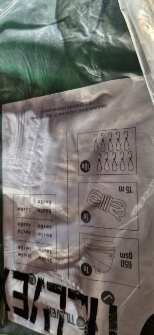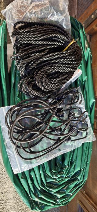 cerada s kovinskimi rinkami, vrvjo in elastičnimi trakovi, zelo odporna na trganje in sonce