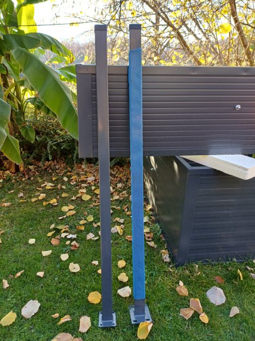- 15 stebrov 6cmx4cm, višine 160cm, s ploščo za montažo na parapet (plošča mere 15x12cm) = 10€/kom