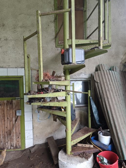 Prodam rabljene okrogle stopnice, stopnice so narejene iz rebraste pločevine in so masivne kovinske konstrukcije, namenjene zunanji in notranji uporabi, so dimenzije 230 x 161 širina fi, dolžina stopnice je 77cm, vrtijo se kontra od ure za 360 stopinj en poln krog, višina stebričkov od ograje je 95cm, vse informacije na telefon 051 607 156.