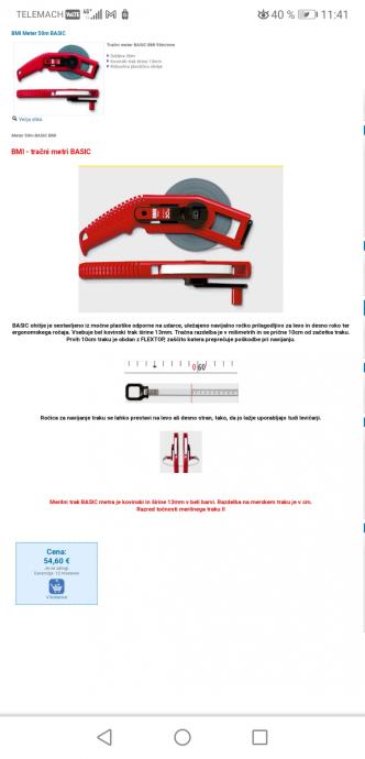 Prodam dobro ohranjen tračni meter znamke BMI Basic 50 m...