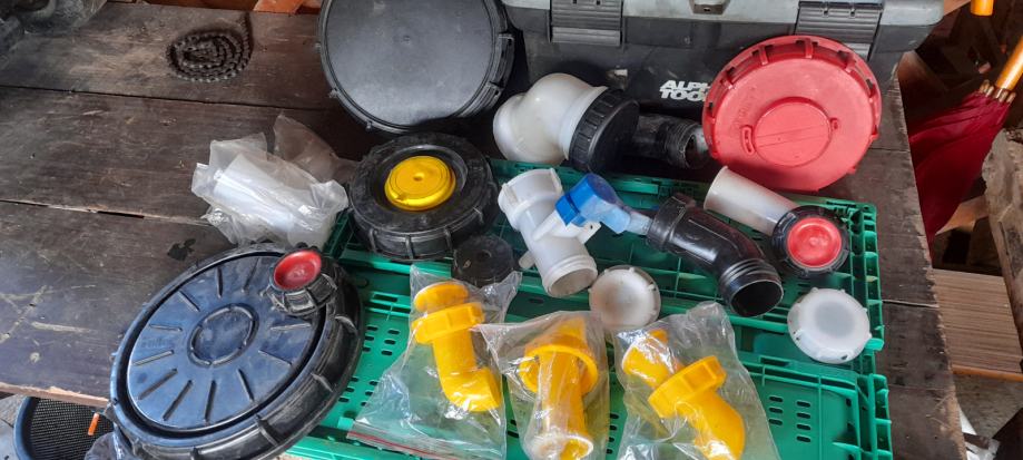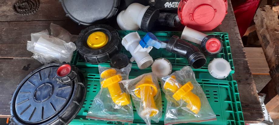 Pipa z navojem za ibc cisterno, dveh razlicnih dimenzij in pokrovi za odprtino cisterne veliki in mali..069 441 941, Krka, pipa 15 eur, pokrov 10 eur