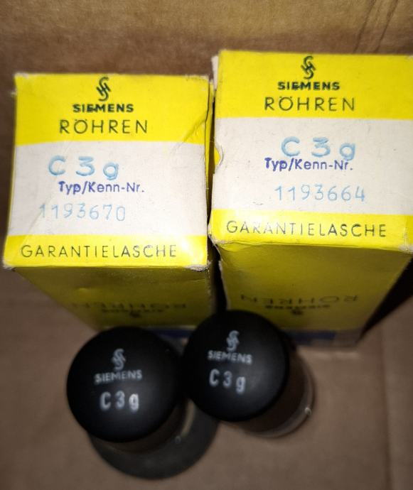2 novi elektronki C3g Siemens , predojačevalni PTT pentodi, PHONO RIA