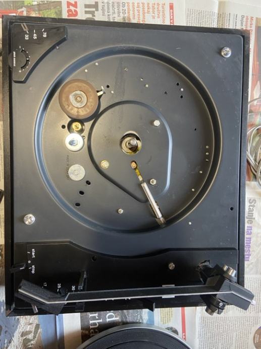 Šasija s samodejnim menjalnikom s 3 hitrostmi 33/45/78 vrtljajev na minuto, ročno enojno predvajanje, samodejno enojno predvajanje in samodejno menjavanje plošč do