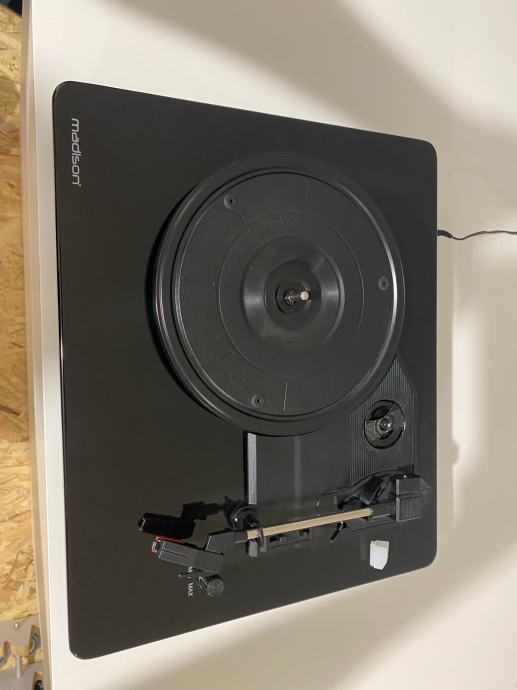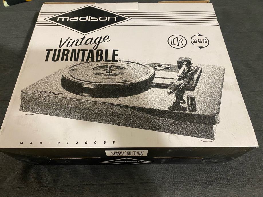 Prodam nerabljen gramofon Madison model: MAD RT200SP. Gramofon ima svoja zvočnika, lahko pa tudi povežeš na ojačevalec preko činčev.